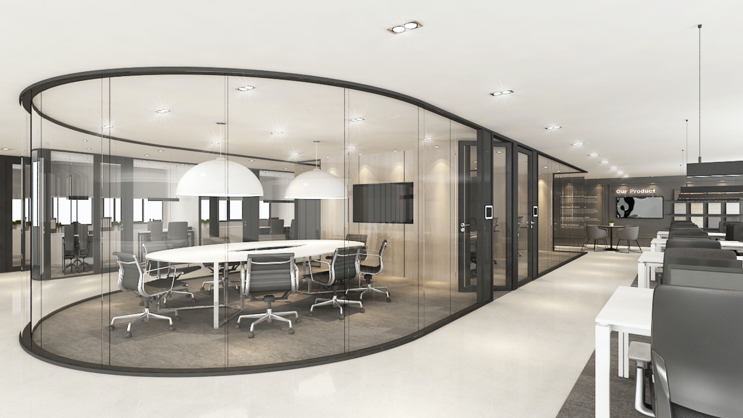 Innovative partitions with curved and bent designs, allowing creative layouts and unique architectural expressions.