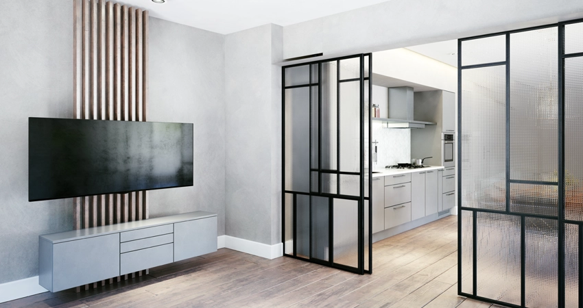 A smooth, space-saving sliding door system, perfect for modern homes and offices. Its compact design maximizes usable space while adding a contemporary touch.